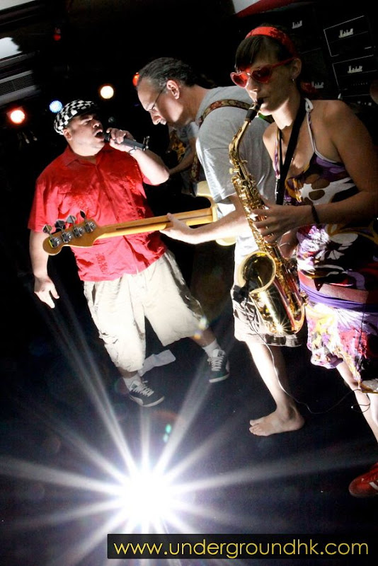 In this type of funky Ska music, the bass usually plays a very essential role in laying out rhythmic, laid-back basslines that make people want to dance. It makes no hesitation to say that the bassist does a fantastic job turning the songs extra groovy. Together with the mellow harmonic ostinatos played by the keyboardist, they, of course, serve to underscore the shuffle guitar patterns, the self-assertive vocals and the captivating saxophone. Every piece they play is just colorful, rich and witty. To be more specific, the way the bassist incorporates into the songs the famous Billie Jean intro, and the saxophonist Careless Whisper, catches the crowd off guard and highlights their performance with a memorable touch.
