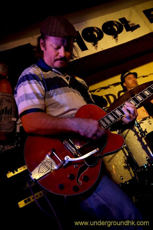 Once upon a time there was a show on the Friday before the Hong Kong Sevens. As you can probably already tell, the draining effect it had on all other gatherings was considerable. Unfortunately, one of those gatherings was this show, and attendance certainly seemed to have suffered towards the beginning of the show (luckily, the numbers did pick up soon, so I won’t bitch too much about this). It was to a burgeoning crowd that Eli began their set. They appeared to be drenched in somewhat cynical boredom – a critical element of 90s rock – with their staid demeanour and unadorned clothing. Having a kind of revisionist take on grunge, they brought some cleverly constructed songs, along with largely simple yet effective instrumentation. Singer Sun has a kind of buzzy, droning voice that really holds their semi-melodic sound together. Plus, to hear a voice like his from someone with his lean frame is always an entertaining paradox.