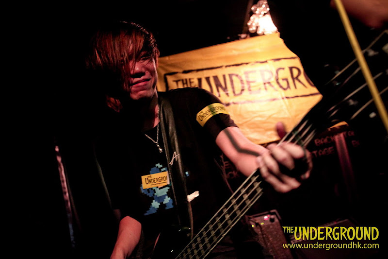 The music itself is difficult to pin down as all the bands that I was put in mind of during TIAs performance were nothing at all like TIA, let alone anything like eachother. It was more a case that I would catch a hint of one band in the maelstrom of bass and drums or in part of a guitar riff or else be suddenly reminded of a particular song through some quirk in the vocals. None of which will help to give you an idea of what TIA are really like in the flesh, the only way is to experience it for yourself (which, let’s face it, you should do anyway). There is a taster in the Heavy 5 section of the Undergrounds’ Youtube page, however anyone who has ever tried to record a concert with their phone will know how reliable these kinds of videos are. Otherwise, their album is available (FOR FREE!!1!) at http://www.imusicbox.hk.