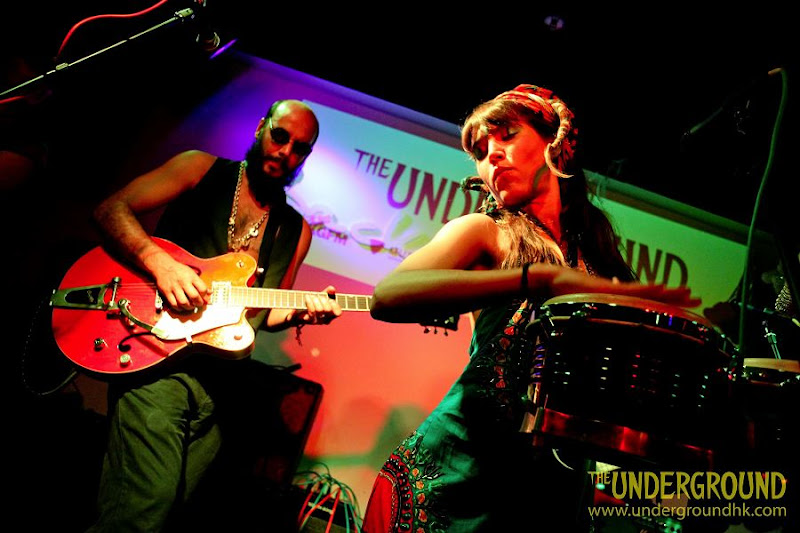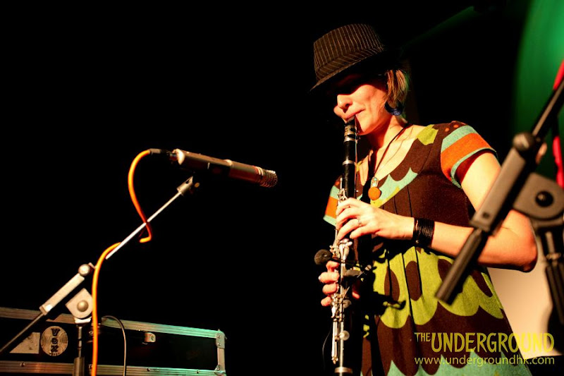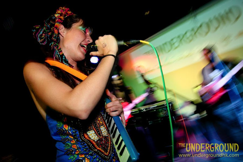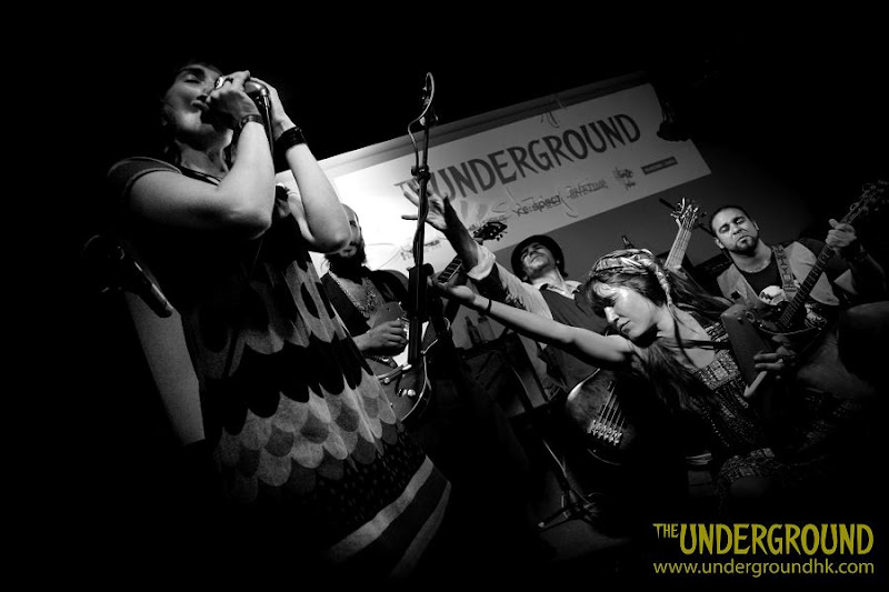 The first thing one would notice about them on stage is that they are a band positively buoyant with energy. Keep in mind, they were at the same level of energy for their Monday show, the same day as they had landed in HK; and all this after months of intensively touring the world. This process has worn major bands down in the past, and it’s reassuring to see bands that tour well. Their singer, Vicky, not being tied down to an instrument (except the intermittent bongo runs) made full use of her freedom, dancing with abandon, on-stage and off it (at one point even with The Underground’s own A&R man). This clearly was infectious and the people in the crowd were happily dancing along to their tunes. However, the rest of the band were dancing almost equally vigorously too; t’was a sight to behold when someone with a violin dancing. But, all for good reason, for such was their music.