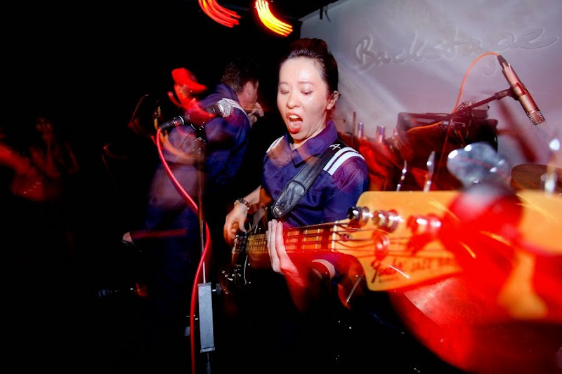 It helps a lot that bassist Maggie has crazy-fast fingers and yet a very measured, cool style. Combine this with drummer Tatsuya’s rockabilly, in-the-groove drums (and his ability to come up with multifarious fills and to know just where to put in these flourishes) and you have a very compelling band Their music is very fun and has that toe-tapping feel that good rockabilly/psychobilly songs do, and the funny lyrics add to that significantly. The lyrics also flow really well and don’t sound contrived; things are kept very conversational but wittily so, with few recourses to cliché, which is an impressive achievement in itself. (As an aside, if you haven’t, you really should have a look at their video for Hamster. If what they are like as a band could be summed up in one video, this comes closest to doing it.)