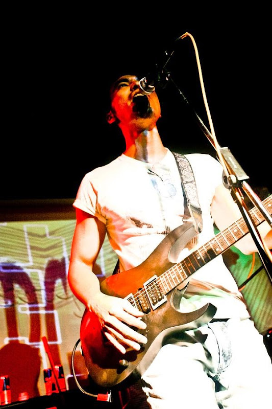 Fame were on fourth, and were the unknowns of the night for me. They started off with a sombre-ish arpeggio, and moved into a chugging bit, reminiscent of Zombie by The Cranberries. The singer has a decent range, and has a deep, off-kilter voice, very similar to that of Eli’s Sun. Unfortunately he, by virtue of this, has the tendency to sound off-key while singing; and while this could be construed as something of an advantage when one considers Eli’s more Radiohead-like style, the straight pop-rock of Fame is not very amenable to sounding off-key. While I strongly feel that this sort of voice just sounds off, several people seemed to think otherwise. This aside, Fame has nothing special to offer the dedicated music-listening audience; their style is very radio-friendly, light-on-the-ears rock, with fairly run-of-the-mill topics, and hackneyed lyrics. Perhaps it was a function of their video for the first stage of the competition being more impressive than they are live; in any case, I have to regretfully say that they’re not really ready for competing at this standard yet.